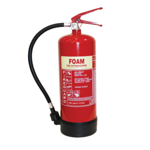 Foam extinguishers are water-based with a foaming agent that creates a blanket over the fire, smothering flames and sealing vapors to prevent re-ignition.